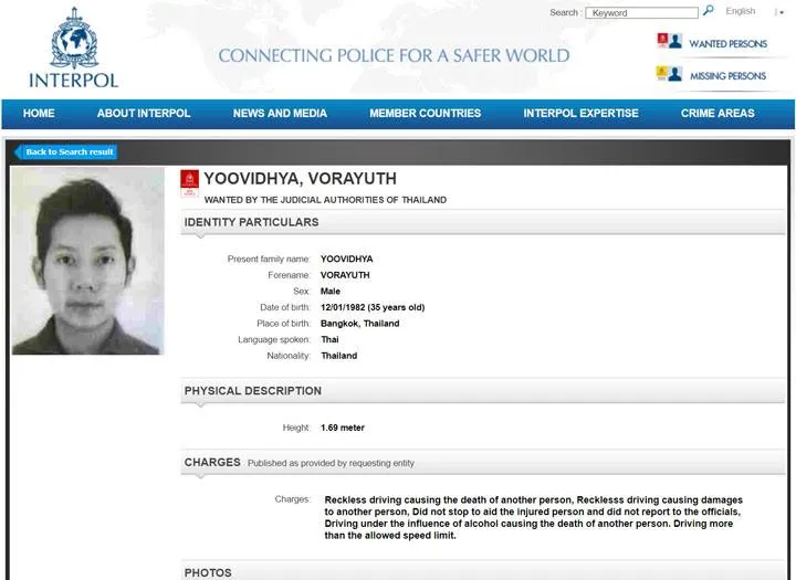 ตำรวจสากลประกาศหมายจับ "บอส อยู่วิทยา" ขับรถชนคนตาย ลงในเว็บไซต์แล้ว เจอตัวที่ไหนจับกุมได้ทันที