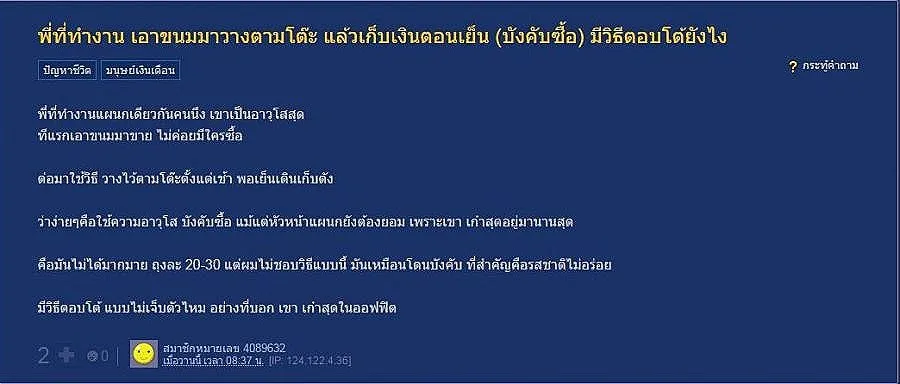 ทำไงดี!!?? พี่ที่ทำงานเอาขนมวางตามโต๊ะ แล้วมาเก็บเงินตอนเย็น
