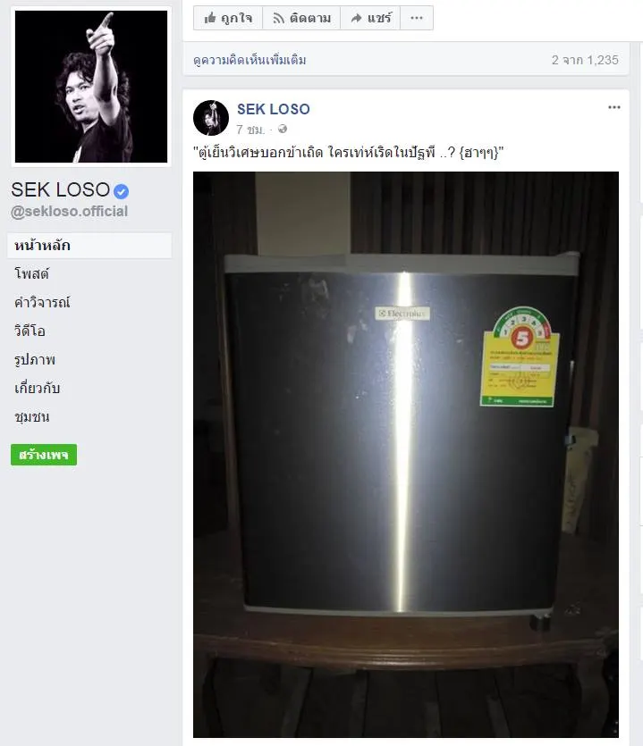 เมื่อวานนี้ทางเฟซบุ้ค ของ เสกโลโซ ได้โพสต์ รูปตุ้เย็น พร้อมกับแคปชั่นว่า