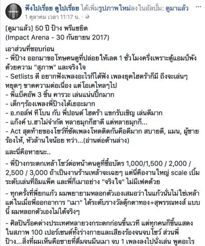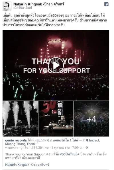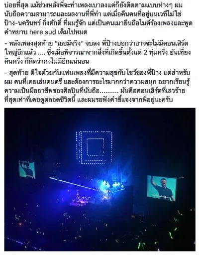 ไม่นาน นักร้องหนุ่มรุ่นใหญ่ ได้โพสต์ข้อความลงบนเพจเฟซบุ๊กส่วนตัว มีข้อความว่า “เมื่อคืน สุดกำลัง สุดหัวใจของคนวัย 50 จริงๆ รู้สึกเหมือนได้เล่นให้เพื่อนสนิทดูจริงๆ ขอบคุณมิตรรักแฟนเพลงมากๆ ครับ ส่วนความผิดพลาดประการใด ขออภัยและจะรับไว้พิจารณาครับ”