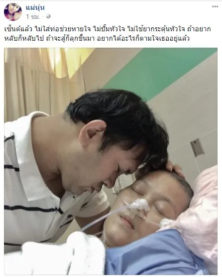ร่วมให้กำลังใจแม่นุ่น ล่าสุด พ่อตุลย์เซ็นไม่ใส่ท่อช่วยหายใจ ไม่ปั๊มหัวใจแม่นุ่นแล้ว
