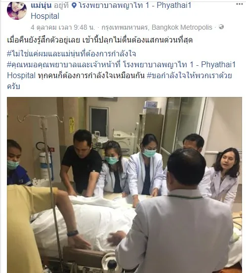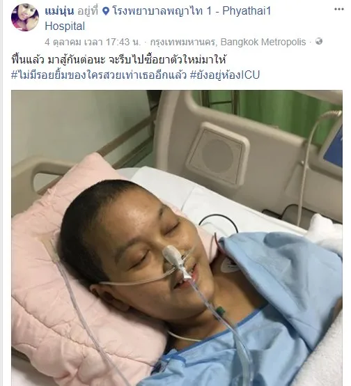 ล่าสุดวันนี้ (6 ตุลาคม 60) พ่อตุลย์ สามีของแม่นุ่น ได้โพสท์เฟซบุ๊กอัพเเดทอาการของแม่นุ่น พร้อมภาพสุดสะเทือนอารมณ์ ระบุว่า "เซ็นต์แล้ว ไม่ใส่ท่อช่วยหายใจ ไม่ปั๊มหัวใจ ไม่ใช้ยากระตุ้นหัวใจ ถ้าอยากหลับก็หลับไป ถ้าจะสู้ก็ลุกขึ้นมา อยากได้อะไรก็ตามใจเธออยู่แล้ว"