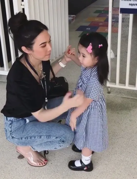 คลิปโมเม้นท์ น่ารักๆ ระหว่าง แม่เมย์ เฟื่องอารมณ์ และ น้องมายู ที่มีการเติมพลังด้วยการหอมกันฟอดใหญ่ ก่อนจะเดินเข้ารั้วโรงเรียน น่ารักฝุดๆ