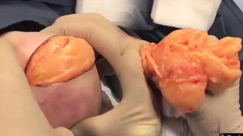 นี่คือ เนื้องอกไขมัน หรือก้อนเนื้อไขมัน ที่เกิดจากเซลล์ของเนื้อเยื่อไขมันเจริญผิดปกติ ในคลิปแพทย์ได้ทำการผ่าออกครับ