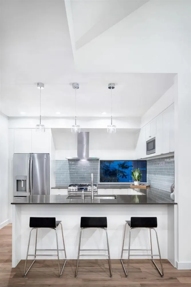 ภายในจะแบ่งสัดส่วนห้องต่างๆ ส่วนเพดานถูกออกแบบให้สูงโปร่ง และเพิ่มกระจกตติดตั้งจากผนังจนถึงหลังคา ช่วยให้รับแสงจากธรรมชาติทำให้ดูโปร่งสบาย และมีสระว่ายน้ำแนวยาว ทำให้บ้านดูโมเดิร์นน่าอยู่มากๆครับ