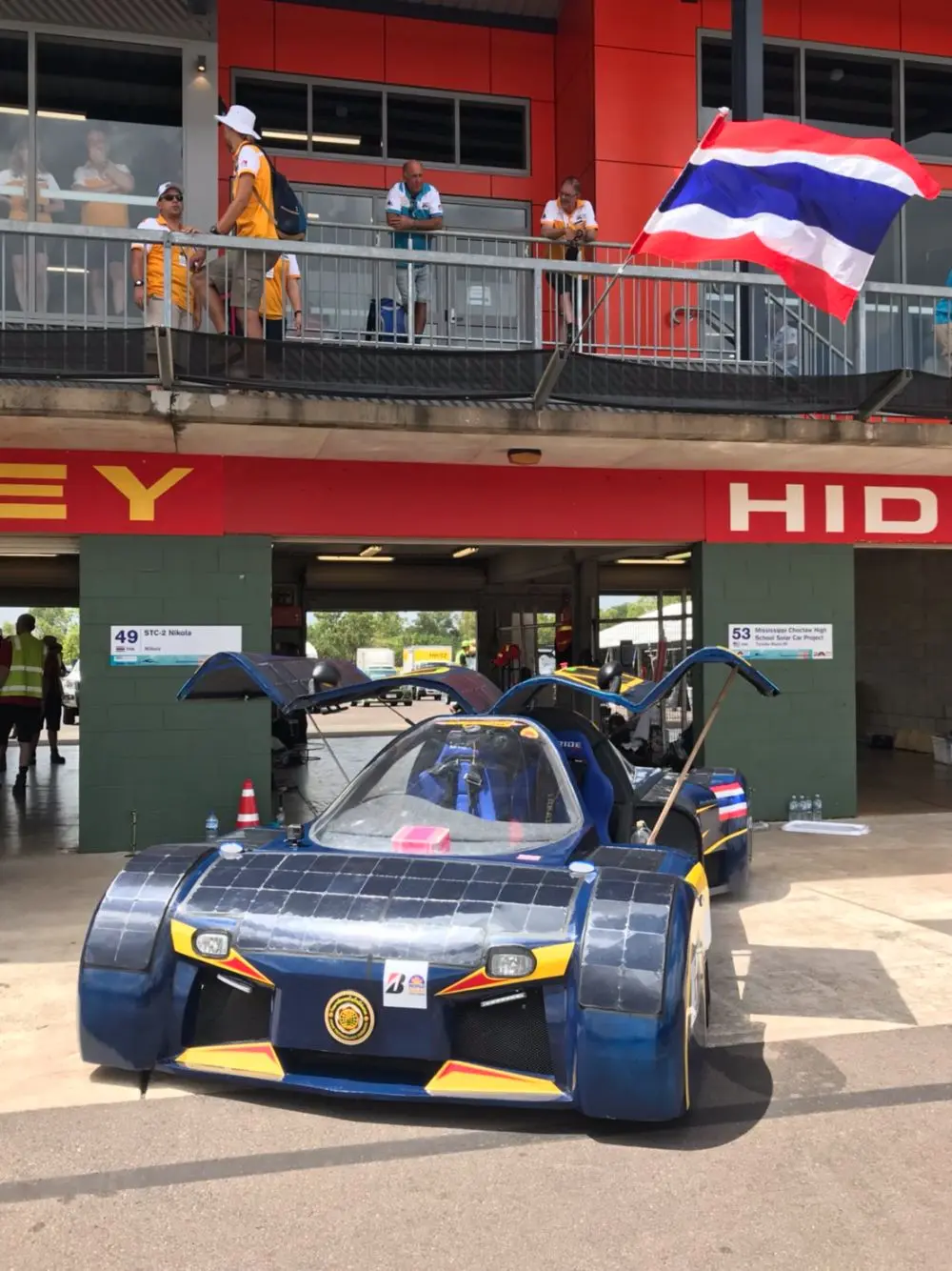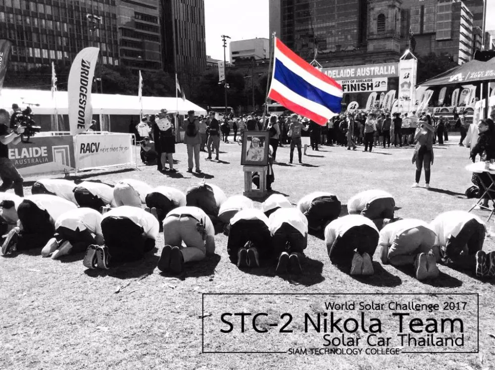 หลังจากที่รถพลังงานแสงอาทิตย์ STC-2 Team (Solar Car Thailand) เข้าสู่เส้นชัยเรียบร้อยแล้ว ทีมงานทุกคนได้ก้มลงกราบพระบรมฉายาลักษณ์พระบาทสมเด็จพระปรมินทรมหาภูมิพลอดุลยเดช มหิตลาธิเบศรรามาธิบดี จักรีนฤบดินทร สยามินทราธิราช บรมนาถบพิตร ด้วยสำนึกในพระมหากรุณาธิคุณเป็นล้นพ้นอันหาที่สุดมิได้