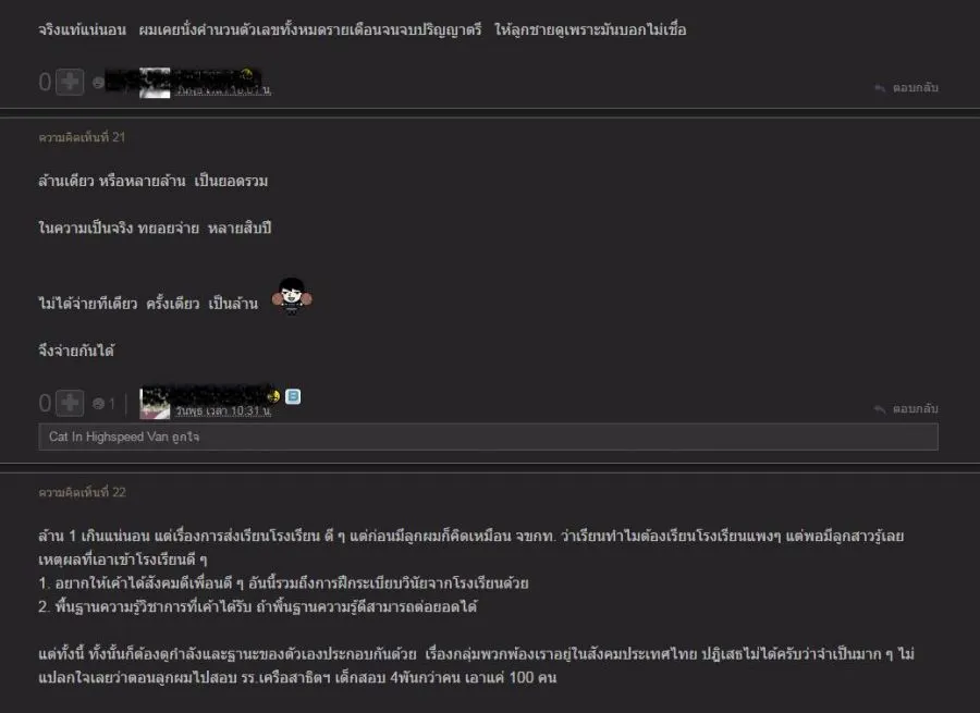 ส่วนตัวคิดว่าน่ามีแนวทางจำกัดค่าใช้จ่ายนะ ล้านนึงมันดูเวอร์เกินไป ถ้าไม่ได้ส่งลูกเรียนโรงเรียนคุณหนูแพงๆ หรือเรียนพิเศษแพงๆ