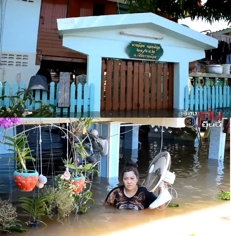 เหลือชั้น2 ยังเอาอยู่! แม่น้ำเจ้าพระยาเอ่อท่วมบ้านริมน้ำ เขต อ.สามโคก