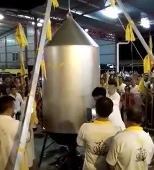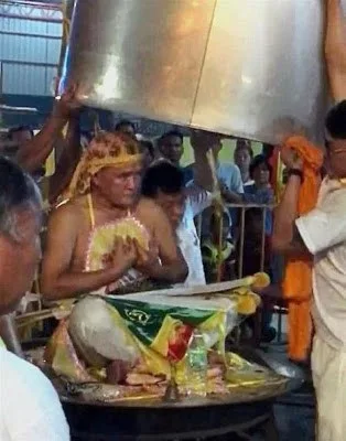 ชายร่างทรงที่มีชื่อว่า ลิ้ม บา วัย 68 ปี ได้เสียชีวิตในกระทะที่ตนเองทำการแสดงโชว์ จนทำให้เกิดอาการหัวใจวายและถูกน้ำร้อนลวก หลังจากที่ได้ทำการแสดงนั่งบนกระทะยักษ์ ที่มีน้ำกำลังเดือดอยู่ เท่านั้นยังไม่พอยังได้เพิ่มความตื่นเต้นให้ผู้ชมโดยการ จากนำฝามาปิดครอบทั้งตัว ราว 30นาที จนทำให้เกิดเหตุสลดดังกล่าว