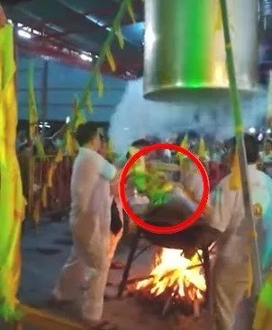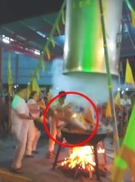 ร่างทรงโชว์เหนือธรรมชาติ นั่งบนน้ำเดือดแล้วเอาฝามาครอบตัว สุดท้ายโดนลวกขาดใจตาย ดับอนาถในกระทะ (คลิป18+)