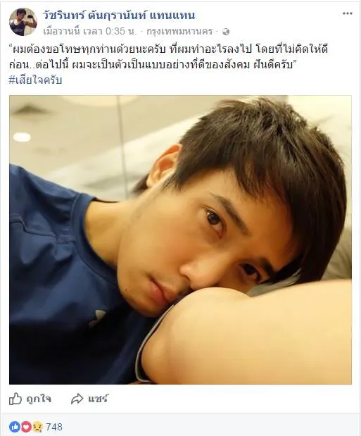 ล่าสุด 31/10/2560 ทาง เฟซบุ้ค วัชรินทร์ ตันกุรานันท์ แทนแทน ได้ออกมาโพสต์เฟซขอโทษแล้ว