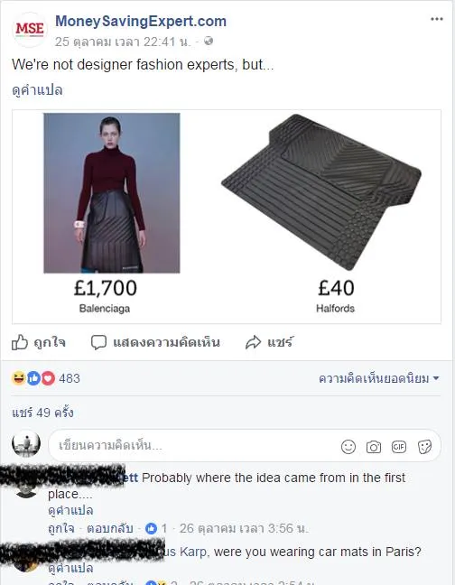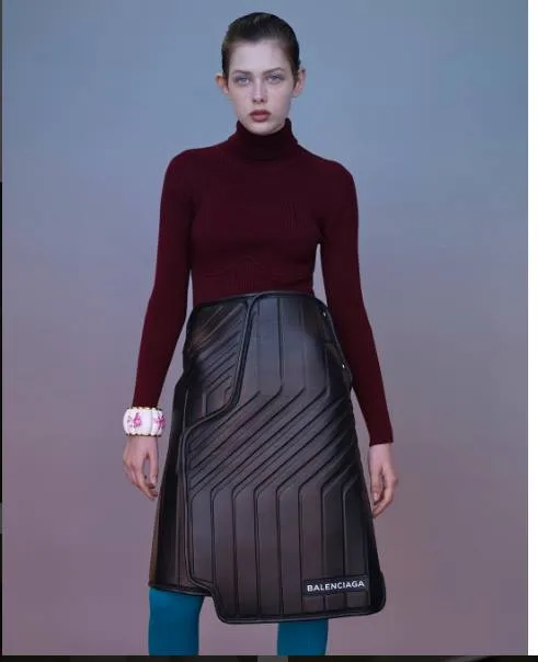 สร้างความฮือฮาอีกครั้ง เมื่อแบรนด์หรู “Balenciaga” เมื่อดีไซนเนอร์ได้ออกแบบถาดยางปูพื้นรถยนต์ธรรมดาๆ ด้วยการดีไซน์ให้เป็นกระโปรงสุดหรู ซึ่งสนนราคาก็อยู่ที่ 1,795 ปอนด์ หรือราวๆ 80,775 บาท เรียกว่าสมฐานะแบรนด์ไฮ-เอนด์เลยจริงๆ กระโปรงดีไซน์ล้ำซึ่งทำมาจากถาดยางปูพื้นรถยนต์ใหม่เอี่ยมนี้ เป็นแฟชั่นคอลเล็คชั่นรับฤดูฤดูหนาว ปีนี้ พร้อมแปะป้ายชื่อแบรนด์ Balenciaga