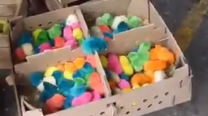 เบิ้องหลัง วีธีย้อมสีลูกไก่.. น่าสงสาร..เราซื้อเขายิ่งขายดี เขาก็ยิ่งย้อมยิ่งทำอีกเยอะเลย...