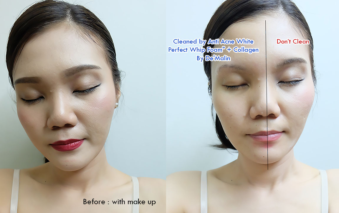 ส่วนผลลัพธ์ที่ได้เป็นที่น่าพึ่งพอใจม่ักกกก เพราะAnti Acne White Perfect Whip Foam สามารถขจัด Makeup ได้หมดจด จะเหลือเฉพาะในส่วนของตาและปากที่ต้องใช้ eye&lip Remover เพิ่มเติม