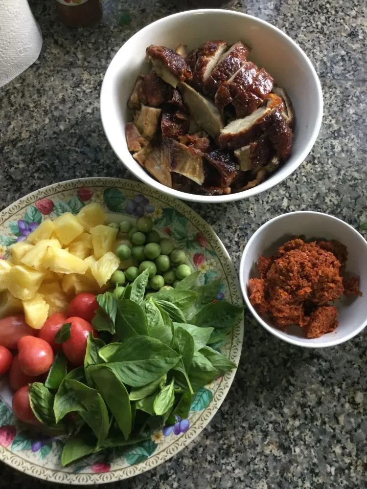 วันก่อนได้รับของฝากคือเป็ดย่างเจ้าดังจากมหาชัย หลังจากได้รับประทานแบบที่ทางร้านจัดชุดมาให้แล้วจึงเหลือเก็บไว้อีกครึ่งตัว