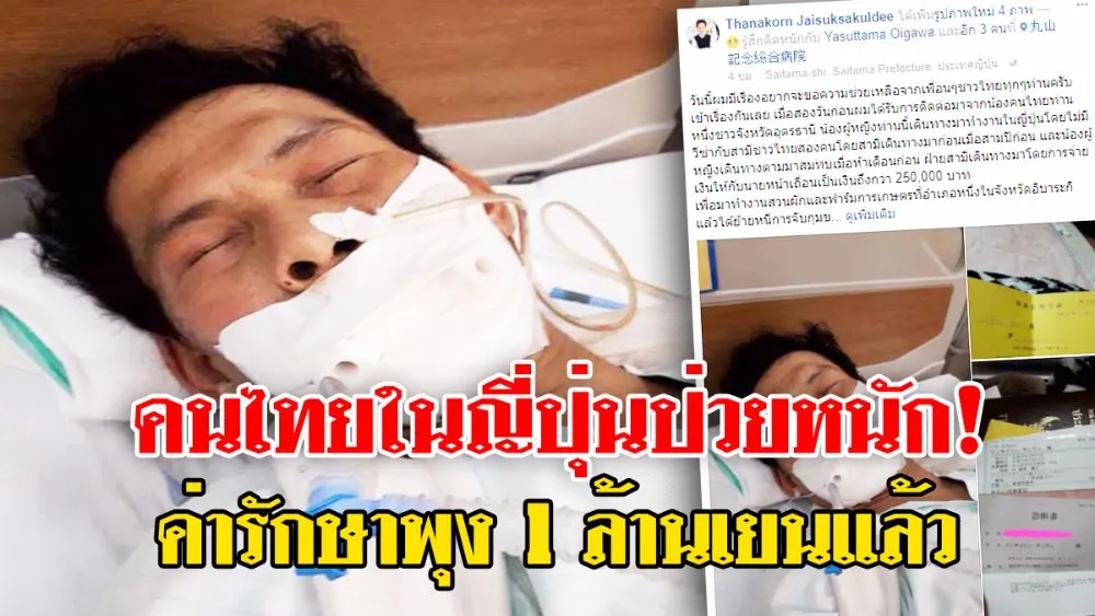 คนไทยเข้ามาทำงานแบบผิดกฏหมาย ป่วยหนักที่ญี่ปุ่น ขอความช่วยเหลือค่ารักษาพยาบาล ที่ตอนนี้ค่ารักษา1ล้านเยนแล้ว