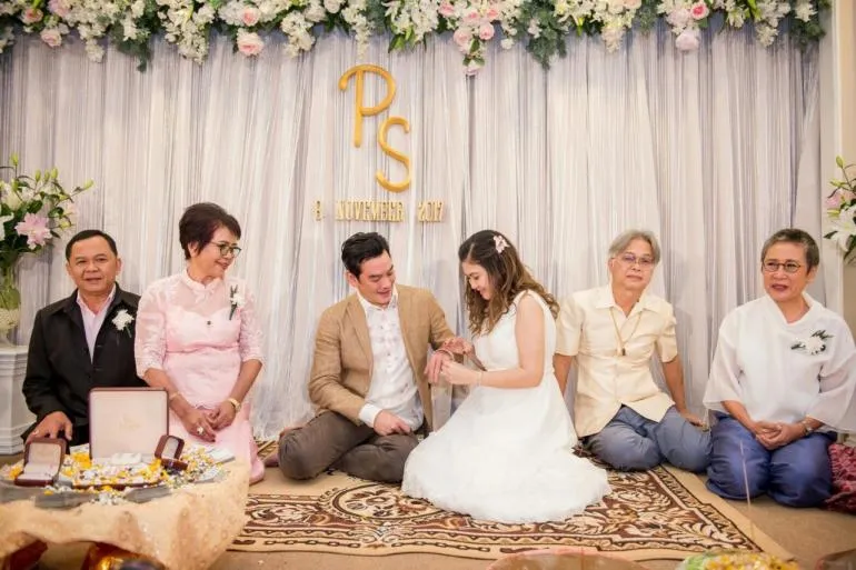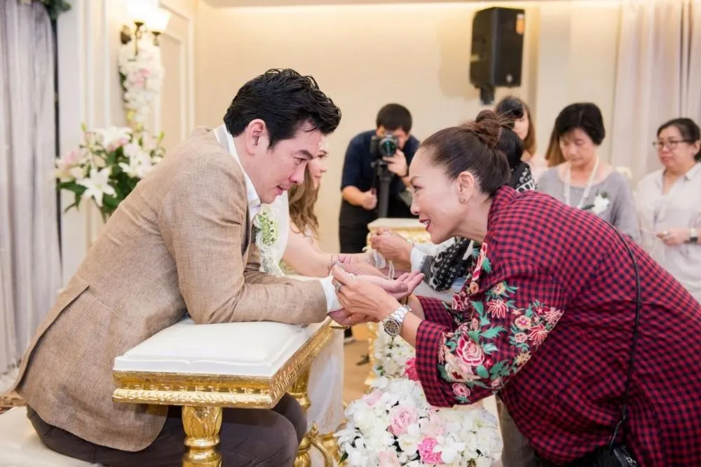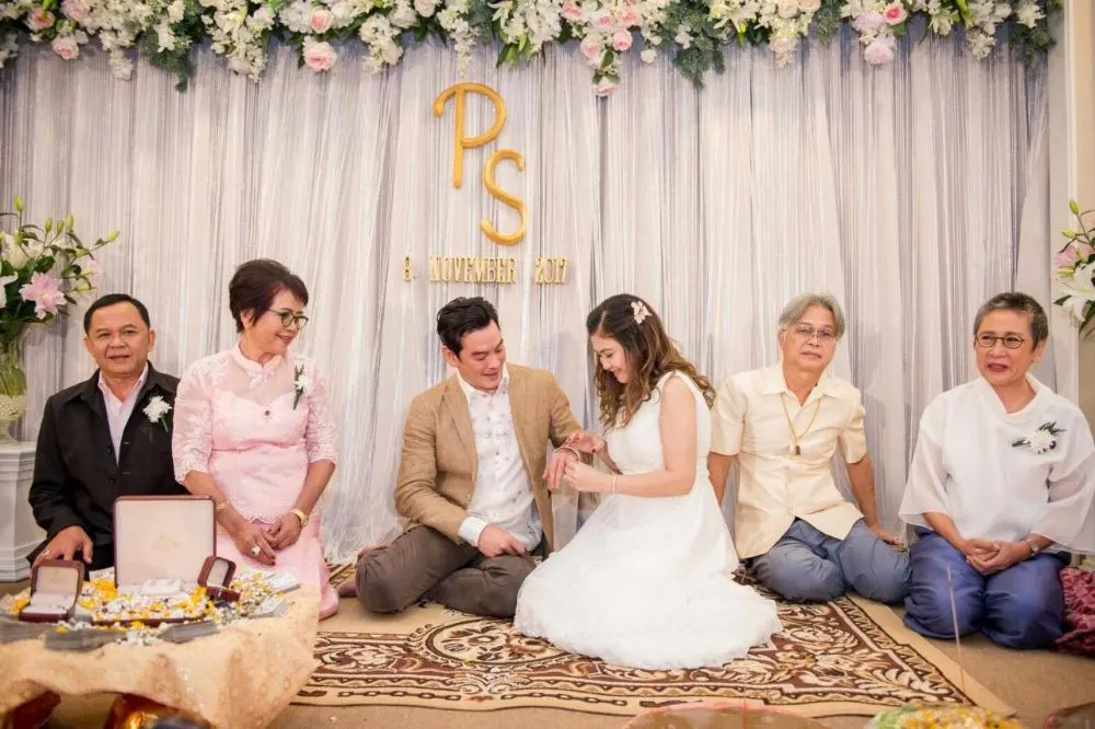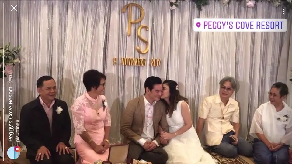 วันที่ 8 พ.ย. 60 ชาคริต" จูงมือ "แอน" เข้าพิธีวิวาห์ ที่รีสอร์ท จ.จันทบุรี ท่ามกลางญาติและเพื่อนสนิท บรรยากาศอบอุ่น เรียบง่าย ชาคริต พาเจ้าสาวกราบคุณแม่ที่กำลั