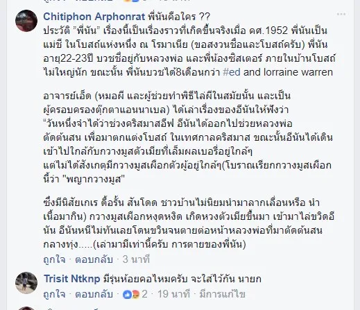 ประวัติ ”พี่นัน” เรื่องนี้เป็นเรื่องราวที่เกิดขึ้นจริงเมื่อ คศ.1952 พี่นันเป็นแม่ชี ในโบสถ์แห่งหนึ่ง ณ โรมาเนีย (ขอสงวนชื่อและโบสถ์ครับ) พี่นันอายุ22-23ปี บวชชี่อยู่กับหลวงพ่อ และพี่น้องซิสเตอร์ ภายในบ้านโบสถ์ไม่ใหญ่นัก ขณะนั้น พี่นันบวชได้8เดือนกว่า #ed and lorraine warren