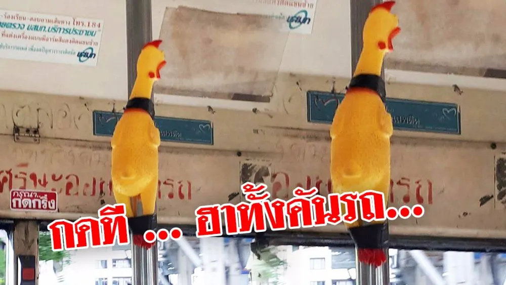 โลกออนไลน์แชร์ภาพอย่างฮา บนรถเมล์สายหนึ่งที่มีเจ้าแตรไก่ถูดมัดไว้บนเสาทางขึ้น-ลง สงสัยกระดิ่งเสีย จะลงไปไหนก็กดแตรไก่ได้เลย..... โอ้ยย กดทีคงขำกันทั้งคัน 5555555 นึกแล้วขำ