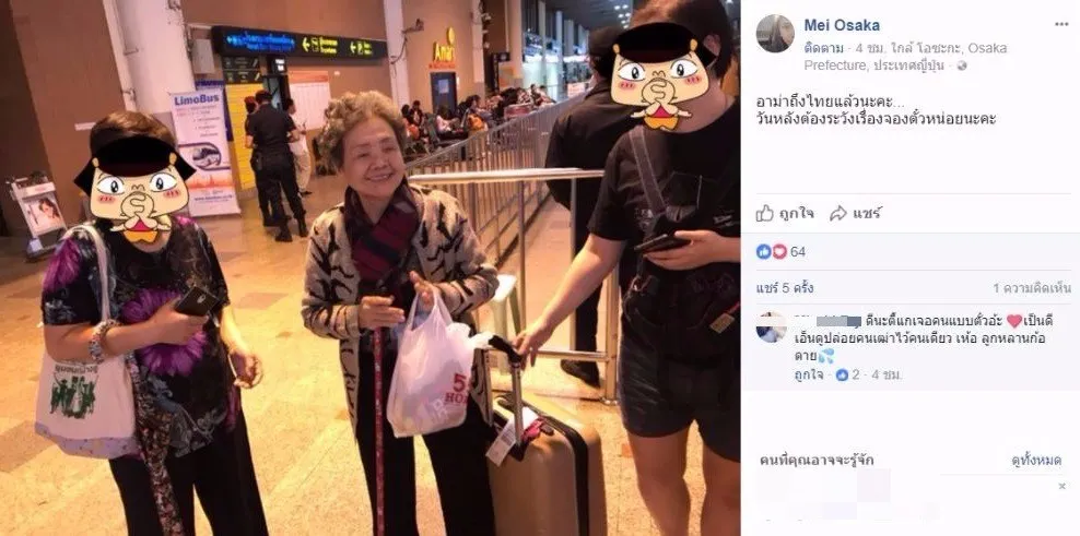 คุณยายวัย 70 ติดในสนามบินคันไซ โอซาก้า 1 วัน ได้รับการช่วยเหลือจากคนไทย ตอนนี้กลับถึงบ้านโดยสวัสดิภาพแล้ว