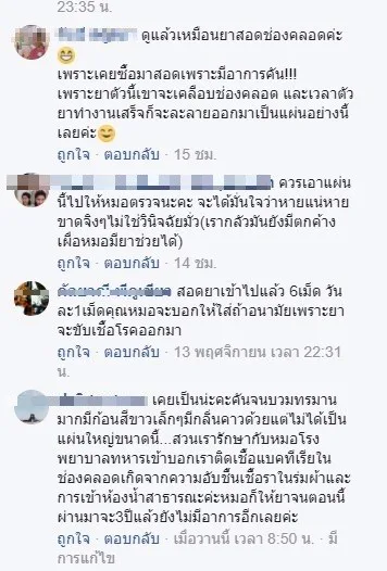 6 พฤศจิกายน 60 เราส่องกระจกดูช่องคลอด เจอเม็ดขาวๆ เต็มปากช่องคลอด ทุกครั้งที่คัน จะเจอไอ้ก้อนขาวๆนี่ และเนื้อด้านบนช่องคลอดเราเป็นแผลขาวๆเหมือนแผลร้อนในที่ปาก เราเลยบอกแฟน แฟนเลยหากูเกิล(หาภาษาอังกฤษ แฟนเราคนจีน) กูเกิลบอกว่าเป็น”Yeast infection” หรือการติดเชื้อจากยีสต์ ช่วงเย็นเลยไปหาเภสัช เจอคนใหม่นะ ไม่ใช่คนเก่า เลยบอกเขาว่าเป็นโรคนี้ไหม เขาบอกน่าจะใช่ เค้าเลยแนะนำยามาให้อีกตัวนึง มี1เม็ดอีกแล้ว แต่ยาตัวนี้แรงมาก จะอยู่ในร่างกายเป็นอาทิตย์เลย และเราซื้อตัวโปรไบโอติกเพิ่ม เพราะเภสัชบอกว่าถ้าเป็นโรคนี้ให้กินพวกยาคูลท์ แต่เราอยากกินเป็นเม็ด ก็เลยซื้อมา