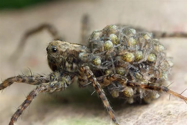 ขนลุก! แมงมุมหมาป่า นักล่าสุดสะพรึ่ง แบกลูกยั๊วะเยี๊ยะไว้บนหลัง