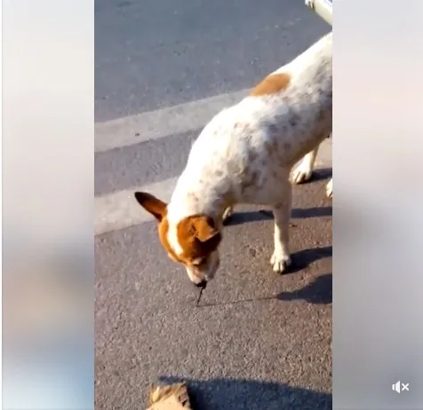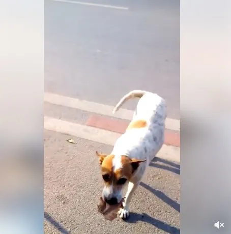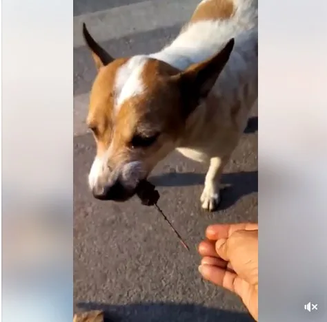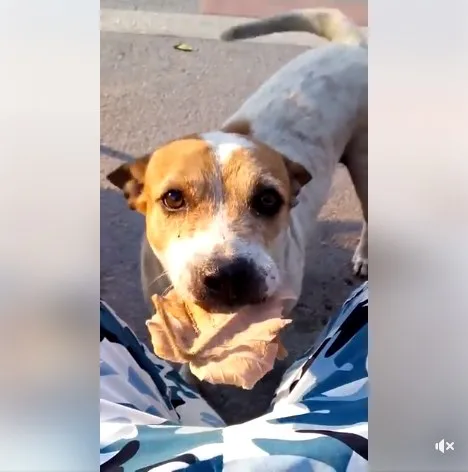 นั่นมันใบไม้ลูก ไม่ใช่เงิน.. น้องหมาคาบใบไม้ มาซื้อหมูปิ้ง