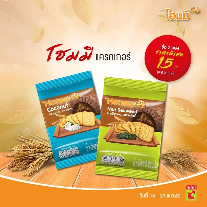 สุดคุ้ม!! ซื้อขนมปังกรอบ โฮมมี ขนาด 80 กรัม ซื้อ 2 ซอง ราคาพิเศษ 15 บาท (ปกติ 20 บาท)