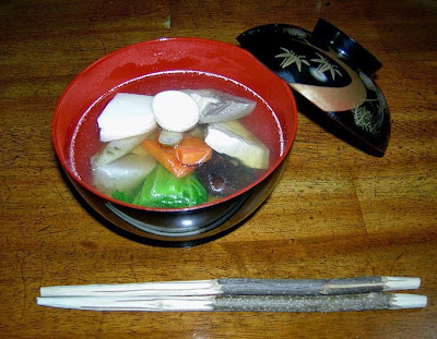 โซนิเป็นอาหารฉลองปีใหม่ของชาวญี่ปุ่น เป็นน้ำซุปใสใส่ก้อนโมจิ และผักตากแห้งต่างๆ เมนูนี้กำเนิดมาจากเหล่าซามูไรที่ทำอาหารนี้ขึ้นในสนามรบ เพราะส่วนผสมเหล่านี้ง่ายในการพกพาและเก็บรักษา โซนิมีแคลอรี่สูงด้วยพลังงานจากก้อนโมจิซึ่งเหมาะมากกับซามูไรในศึกสงคราม แต่ส่วนประกอบในปัจจุบันนิยมใส่เป็นผักสด อาจมีเพิ่ม ไก่ ปลา ตามใจชอบ