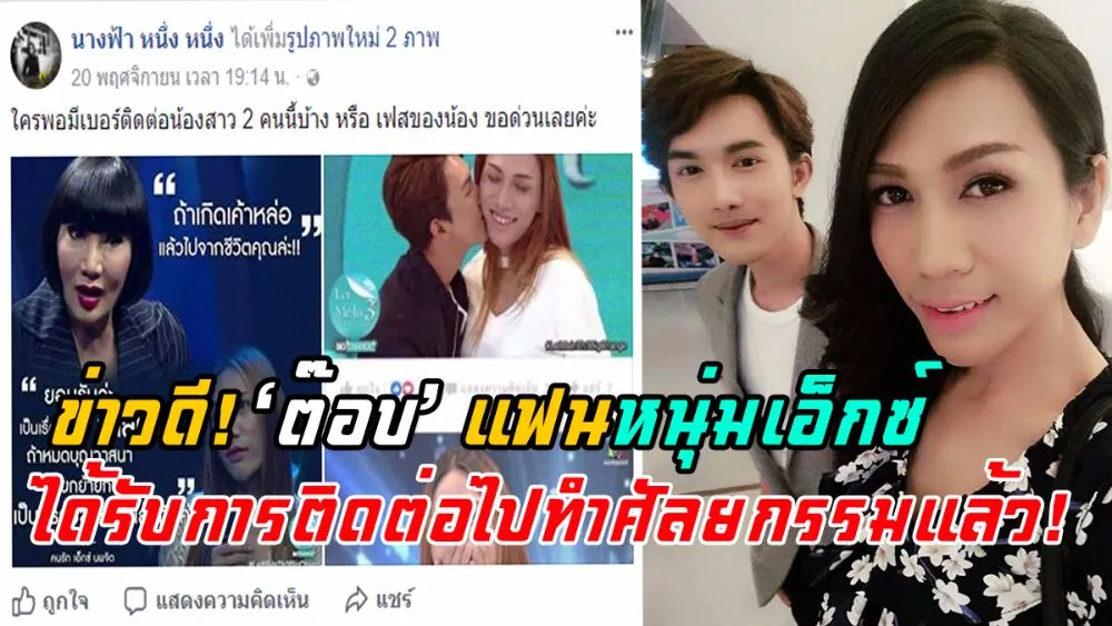 ล่าสุด ! ถือว่าเป็นข่าวดี สำหรับ กะต๊อบ แฟนสาวประเภทสอง เมื่อวันที่ 20 พฤศจิกายน 2560 เฟซบุ๊ก นางฟ้า หนึ่ง หนึ่ง ซึ่งเป็นเอเจนซี่ด้านการทำศัลยกรรมเกาหลี ได้โพสต์ข้อความระบุว่า "ใครพอมีเบอร์ติดต่อน้องสาว 2 คนนี้บ้าง หรือ เฟสของน้อง ขอด่วนเลยค่ะ"