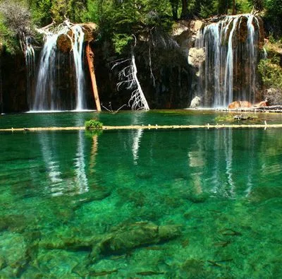 ทะเลสาบ Hanging ในแถบโคโลราโด สหรัฐอเมริกา เป็นธารน้ำตกที่มีทะเลสาบขนาดเล็กอันสวยงาม น้ำส่องประกายสีเทอร์ควอยซ์ เนื่องจากมีแร่หินอ่อนปะปนอยู่ในน้ำ และเป็นหนึ่งในไม่กี่สถานที่ ที่ดอกโคลัมไบน์เหลืองสามารถเจริญเติบโตได้
