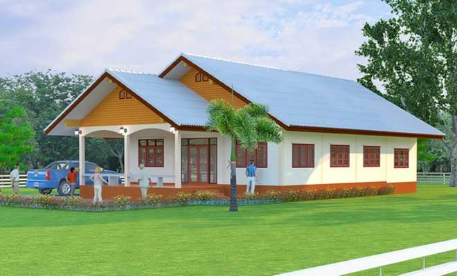 บ้านนั้นเป็นปัจจัยสำคัญจะสร้างทั้งทีมันก็ต้องโดนใจมีไอเดียแจ่มๆ กันบ้าง แต่วันนี้เรามีแบบบ้านชั้นเดียว ที่มาในสไตล์บ้านๆ แบบของบ้านเรามาฝากกันครับ มีชื่อว่า แบบบ้านเกษตรรุ่งเรือง ผลงานการออกแบบโดย เว็บไซต์ thaidrawing.com ใครกำลังจะสร้างบ้านที่บ้านนอกมาเอาไปใช้ได้เลย