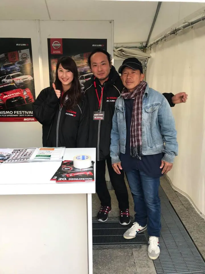 -ภาพที่เห็นนี้คนขวาสุดคือพ่อของผมครับส่วนผู้ชายและผู้หญิง2คนคือเจ้าหน้าที่ในงานรถ Nismo Fuji Speedway ครับ