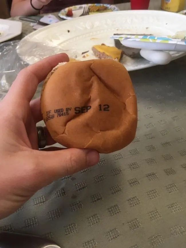 4. เอาวันหมดอายุมาติดที่ตัวแฮมเบอร์เกอร์กันเลยทีเดียว