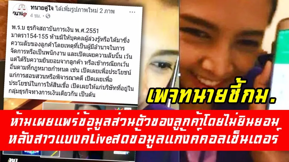 ดราม่า! ทนายดังชี้ข้อกม.ห้ามเผยแพร่ข้อมูลส่วนตัวของลูกค้าโดยไม่ยินยอม สมควรโดนไล่ออก หลังพนง.แบงค์เปิดเผยแก๊งคอลเซ็นเตอร์
