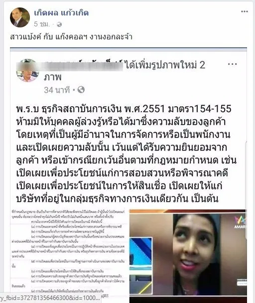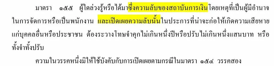 กลายเป็นประเด็นดังทั่วโลกโซเชียลไปแล้ว จากกรณีที่มีทนายดังชี้ กม. เกี่ยวกับกรณีที่พนักงานแบงค์ได้นำข้อมูลของมิจฉาชีพ หนึ่งในแก๊งค์คอลเซ็นเตอร์ลวงให้โอนเงิน มาเปิดเผย ระบุถือเป็นความผิด ชี้พนง.แบงค์มีทำผิดกฏหมาย สมควรถูกไล่ออกสถานเดียว และต้องดำเนินคดี เพราะทำผิดกฏหมายตาม พรบ.สถาบันการเงิน พ.ศ 2551 มาตรา 154 -155