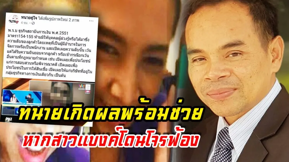 ทนายเกิดผล "โต้" ทนายดังที่ชี้ให้เอาผิดสาวแบงค์ เพราะเผยข้อมูลลูกค้ามิจฉาชีพ หากสาวแบงค์โดนฟ้อง! ยินดีเป็นทนายให้