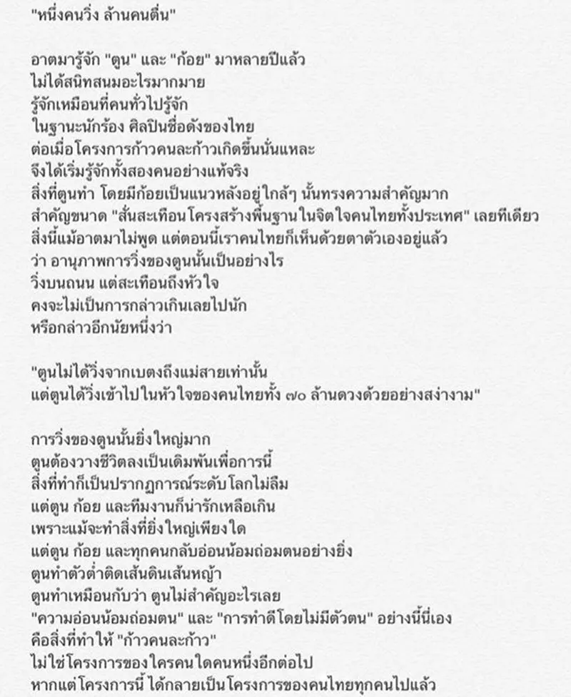 ลึกซึ้งกินใจ เปิดจดหมายจากท่าน ว.วชิรเมธี ถึง ตูน ตูนวิ่งบนถนนแต่สะเทือนถึงหัวใจ เพราะวิ่งเข้าไปอยู่ในหัวใจคนไทยทั้ง70ล้านดวง