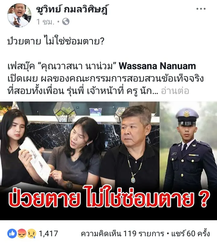 เฟสบุ๊ค “คุณวาสนา นาน่วม” Wassana Nanuam เปิดเผย ผลของคณะกรรมการสอบสวนข้อเท็จจริง ที่สอบทั้งเพื่อน รุ่นพี่ เจ้าหน้าที่ ครู นักเรียนบังคับบัญชา ทหารเสนารักษ์ กองแพทย์ รวม 41 คน สรุปว่า