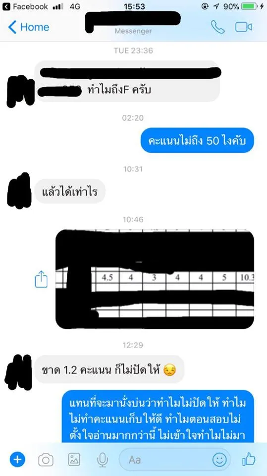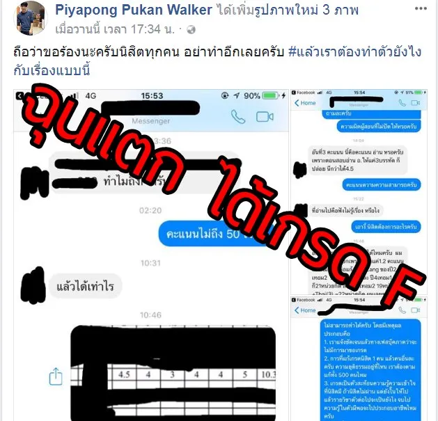 นศ. คนหนึ่ง ฉุนแตก ได้เกรด F แชทโวยอาจารย์ เลยโดนชาวโซเชียลสับเละ ว่าสุดก้าวร้าว อ้างขาดอีกเพียง 1.2 คะแนนก็ผ่านแล้ว ด้านอาจารย์แจงละเอียดยิบ ส่วนโซเชียลสับนิสิตเละ