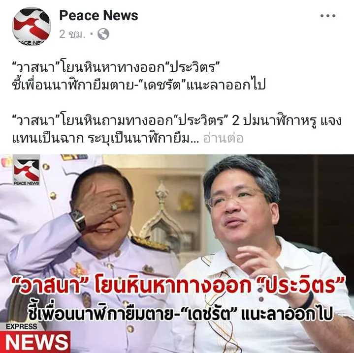 ดร.เดชรัต สุขกำเนิด อาจารย์เศรษฐศาสตร์ ม.เกษตรศาสตร์ นำข้อความของ น.ส.วาสนา มาแสดงความเห็นในเฟซบุ๊คว่า “บิ๊กป้อมเริ่มโยนหินถามทางผ่านทางคุณวาสนาครับ เปิดประเด็น “เพื่อนตาย” และปัญหาสุขภาพของบิ๊กป้อมครับ”