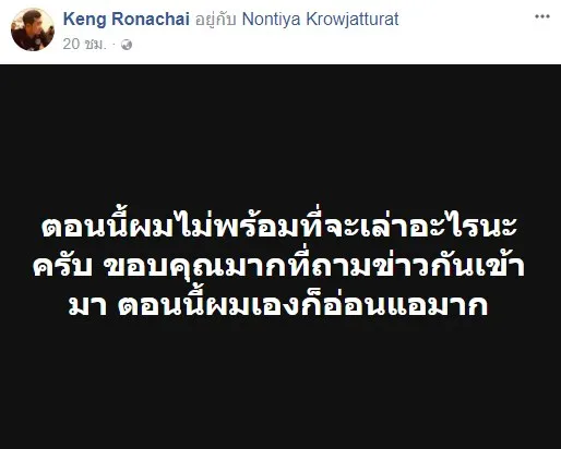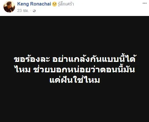 อย่างไรก็ตามหลังเกิดเหตุ ได้ลองตรวจสอบเฟซบุ๊กซึ่งเป็นของนายรณชัย (Keng Ronachai ) พบว่า เมื่อวานที่ผ่านมา (19 ธ.ค. 60) ได้โพสต์ข้อความ แสร้งโศกเศร้าเสียใจ สุดท้ายก็ไม่รอดจำนนด้วยหลักฐานดังกล่าว..