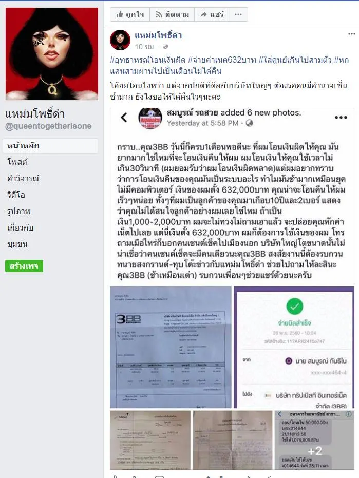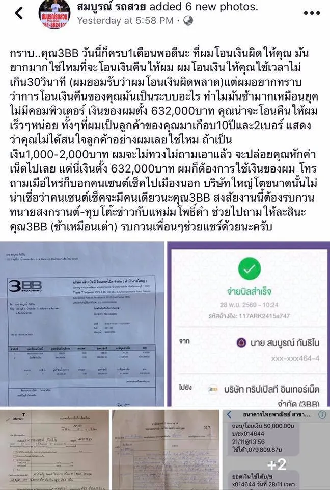 อุทธาหรณ์!! โอนเงินผิด จ่ายค่าเนต632บาท แต่ใส่ศูนย์เกินไป3ตัว เป็นหกแสนสาม ผ่านไปเป็นเดือนไม่ได้คืน