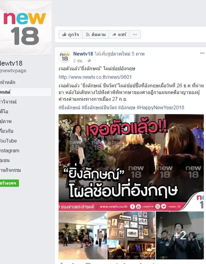 เมื่อวันที่ 29 ธ.ค. 2560 เฟซบุ๊ค Newtv18 ได้เผยแพร่ภาพ น.ส. ยิ่งลักษณ์ ชินวัตร อดีตนายกรัฐมนตรี หลังจาก ไม่เดินทางไปฟังคำพิพิพากษาของศาลฎีกาแผนกคดีอาญาของผู้ดำรงตำแหน่งทางการเมือง เมื่อวันที่ 27 ก.ย.2560 ที่ผ่านมา ทำให้ ศาลฎีกาแผนกคดีอาญาของผู้ดำรงตำแหน่งทางการเมืองอ่านคำพิพากษาลับหลัง น.ส.ยิ่งลักษณ์ ซึ่งมีความผิดประเด็นระบายข้าวแบบรัฐต่อรัฐ (จีทูจี) ฐานละเว้นการปฏิบัติหน้าที่โดยทุจริต เป็นความผิดตามประมวลกฎหมายอาญา มาตรา 157 (เดิม)และ พระราชบัญญัติประกอบรัฐธรรมนูญ (พ.ร.ป.) ว่าด้วยการป้องกันและปราบปรามการทุจริต พ.ศ.2542 มาตรา 123/1 ลงโทษจำคุก 5 ปี อย่างไรก็ตาม เนื่องจาก น.ส.ยิ่งลักษณ์ หลบหนีออกนอกประเทศ จึงได้มีการออกหมายจับตัวมาดำเนินคดี