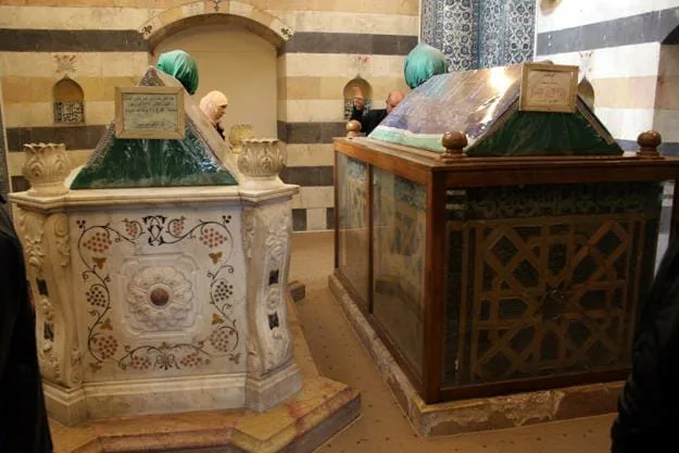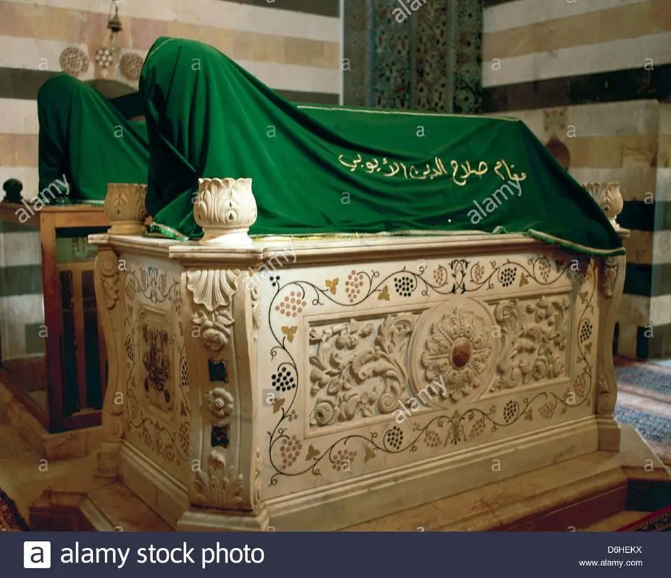 หลุมฝังศพของเศาะลาฮุดดีน ในดามัสกัสครอบหลุมฝังศพของเศาะลาฮุดดีนทางด้านขวาถูกคลุมด้วยผ้าไหมสีเขียวมีข้อความกุรอานปักด้วยดิ้นสีทอง ส่วนครอบหินอ่อนสีขาวเป็นของขวัญจากวิลเฮล์มที่ 2 จักรพรรดิเยอรมันและกษัตริย์คนสุดท้ายแห่งปรัสเซีย (27 ม.ค. 1859 – 4 มิ.ย.1941)