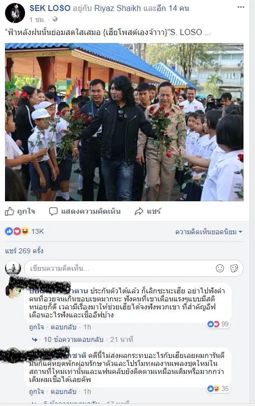 วันนี้ 3/1/2560 เฟสบุ้ค เสกโลโซ ได้โพสต์ข้อความ หลังได้รับการประกันตัวแล้วว่า
