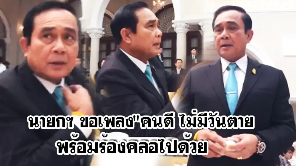 นายกฯ ขอเพลง"คนดี ไม่มีวันตาย" และร้องคลอไปด้วย .เผยเพลงนี้ หมายถึงทหารที่เสียสละ ไม่ได้ร้องให้ผม