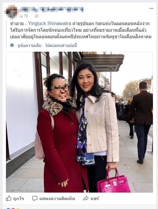 เมื่อวันที่ 5/1/2561 ผู้ใช้เฟซบุ้ครายหนึ่งซึ่งเป็นอดีตผู้สื่อข่าวรอยเตอร์ในประเทศไทย ได้โพสต์ภาพยิ่งลักษณ์ ในชุดคลุมสีน้ำตาลและถือกระเป๋าแอร์เมส พร้อมแคปชั่นว่า