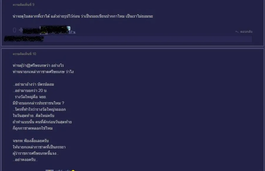 8.เราแม่และน้องสาว เสียความรู้สึก เสียเวลาที่ต้องมารอรับรางวัล(ปลอม) ความรับผิดชอบของเจ้าหน้าที่แค่ให้เราไปจับสลากใบใหม่เรื่องก็จบ (แค่นั้นหรอ)
