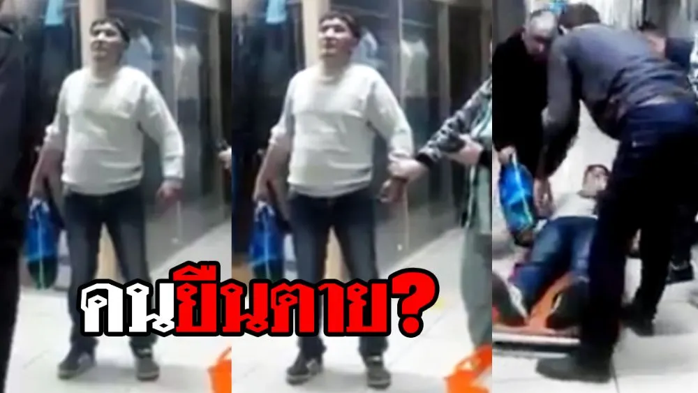 หลังจากนั้นก็มีคนนำเปลมาหามเขาไป โดยในคลิปได้อธิบายแค่ว่าเขายืนตาย... ซึ่งเป็นอาการเกิดขึ้นที่ไม่บ่อยหนักกับการเสียชีวิตในลักษณะนี้